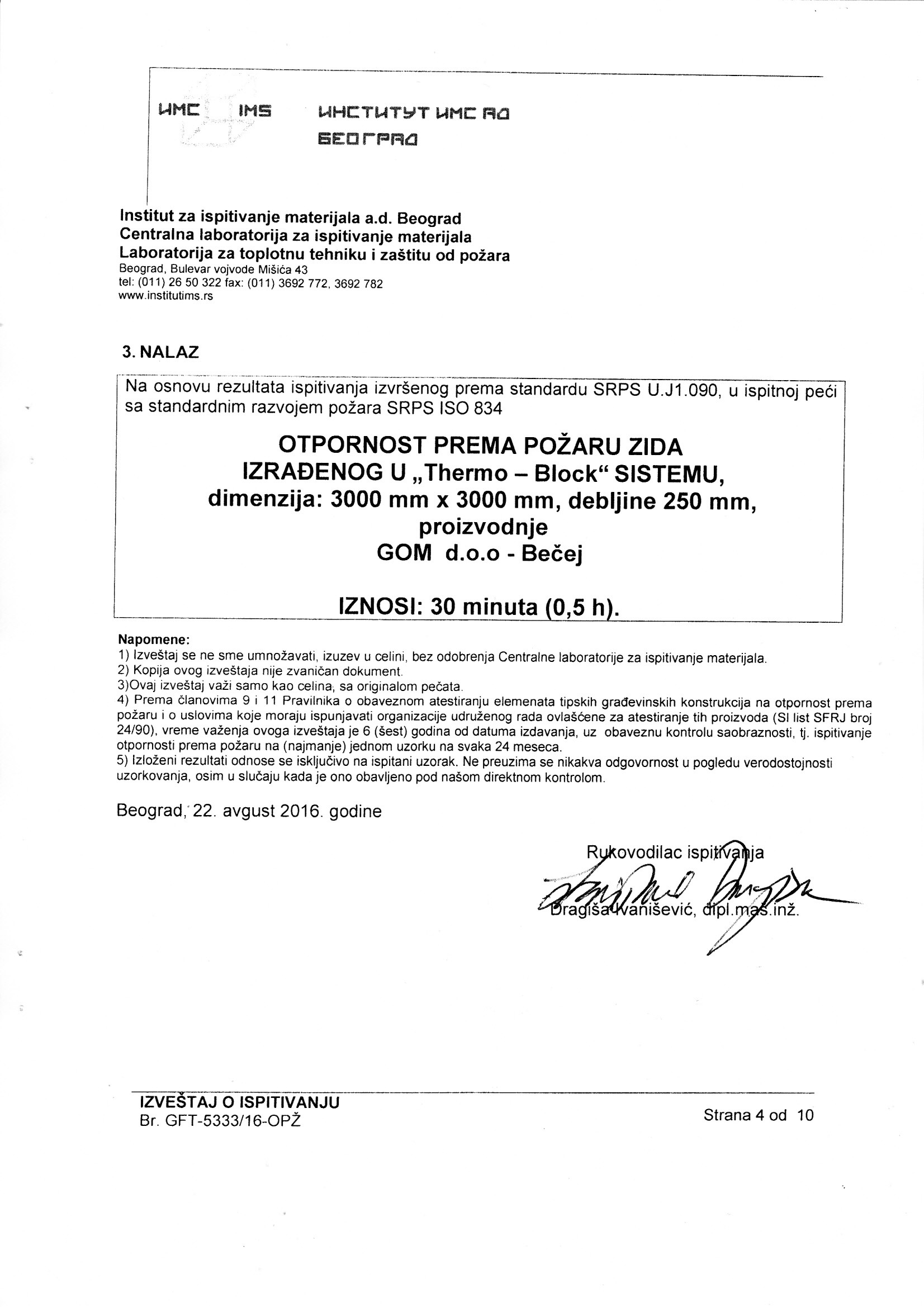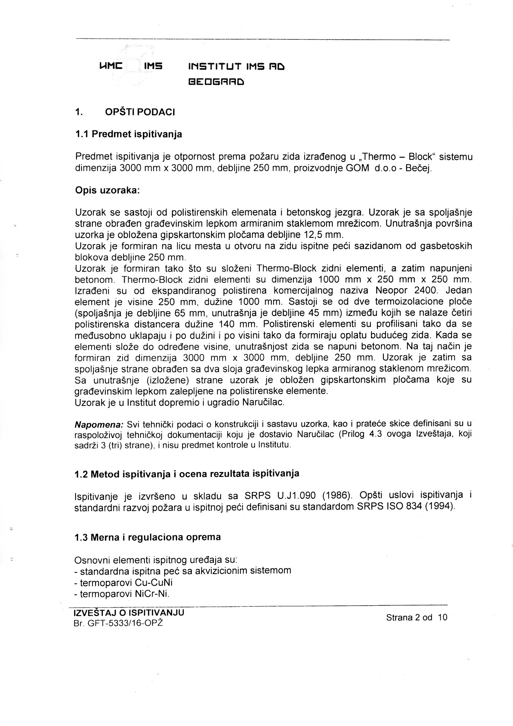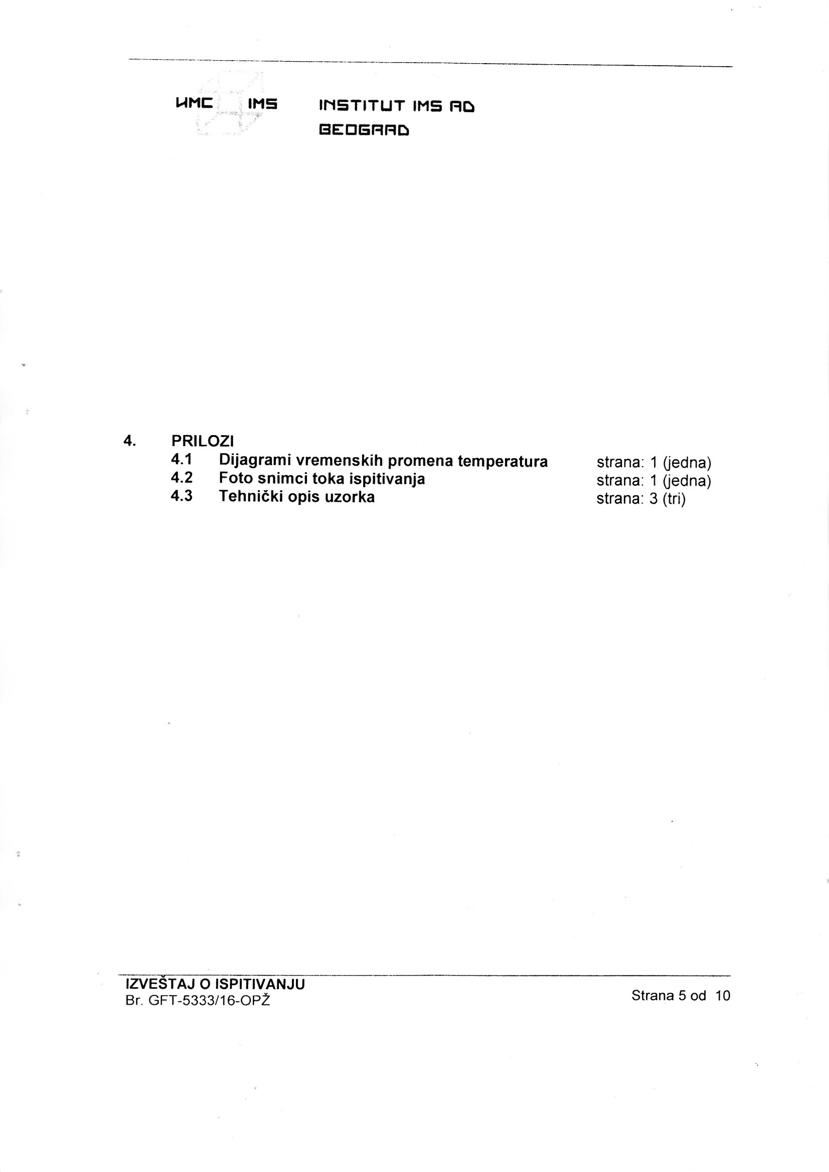 Izveštaj o ispitivanju GFT-5333/15-OPŽ